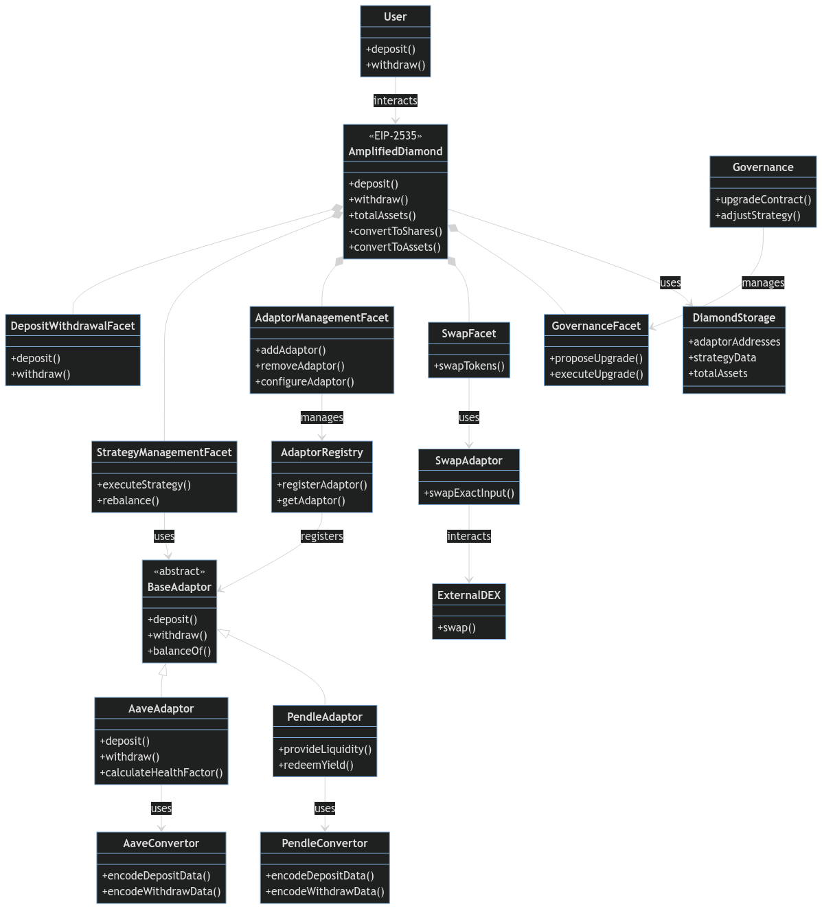 Amplified’s asset management framework leverages the ERC-4626 standard to maximize yield potential, efficiency, and risk management: